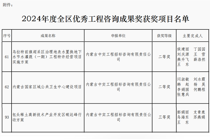 2025-04-1610055 次2025年4月16日,内蒙古工程咨询协会公布了2024年度优秀咨询成果奖获奖单位名单,我司取得两个二等奖和一个三等奖,我司专业能力和服务质量再次获得行业的认可。此次获奖,不仅体…